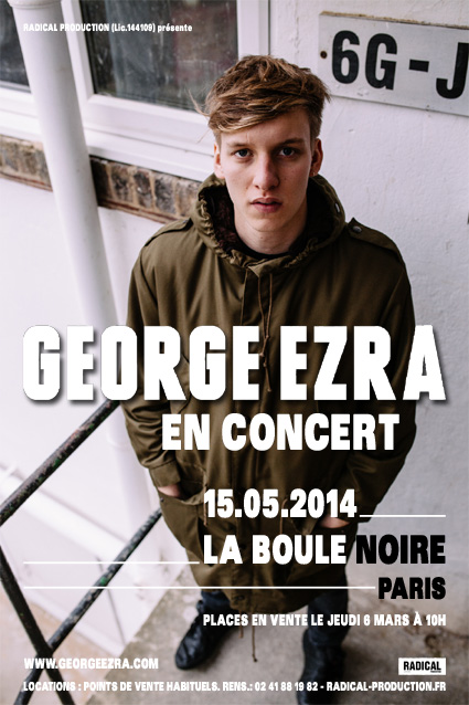 06 Mar George Ezra en concert à Paris Posted at 13:26h in News by Chris 0 Comments 0 Likes Share Le talentueux George Ezra sera en concert à Paris du côté de La Boule Noire, le 15 mai prochain. Les places sont d’ores-et-déjà en vente ! Tags: agenda, concert, George Ezra, gig, la boule noire, Paris