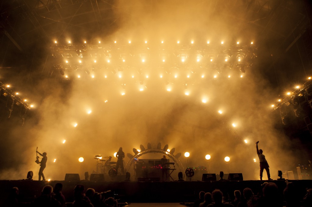 La journée de samedi commence plutôt doucement. On en profite donc pour jeter un coup d’oeil aux artistes “made in France” comme Alb et leur set qui respire la bonne humeur ou Emilie Simon qui bénéficie du traditionnel accompagnement de l’Orchestre National d’Ile de France. Concert plutôt convaincant même si la surcouche ONDIF fait parfois too-much. La nuit commence à tomber et c’est du très lourd qui nous attend sur la grande scène avec Portishead et The Prodigy. On commence par le groupe de Beth Gibbons, qui nous offre une performance irrésistiblement glaciale. Le public est plongé dans l’univers trip-hop de la chanteuse et de ses acolytes. Un franc succès pour une formation pas très rock ‘n roll mais terriblement envoûtante. Gibbons se paye même le luxe de faire un rappel. Une heure plus tard, nous retrouvons un tout autre style mais, encore une fois, très ravageur. The Prodigy, d’entrée de jeu, emporte tout sur son passage : les festivaliers de la grande scène, du premier au dernier rang s’agitent au rythme effréné du momument de la musique électronique, une véritable machine à tubes (Breathe, Voodoo People, Smack My Bitch Up, Take Me To The Hospital, Omen…) qui prend une dimension encore plus démente en live. La basse est redoutable, les frontmen au meilleur de leur forme. Le tout couronné d’un jeu de lumières hors du commun, et tous les ingrédients sont réunis pour réaliser un concert exceptionnel. Ainsi les deux artilleries lourdes du samedi ont fait bien plus que confirmer, elles nous ont scotchés.
