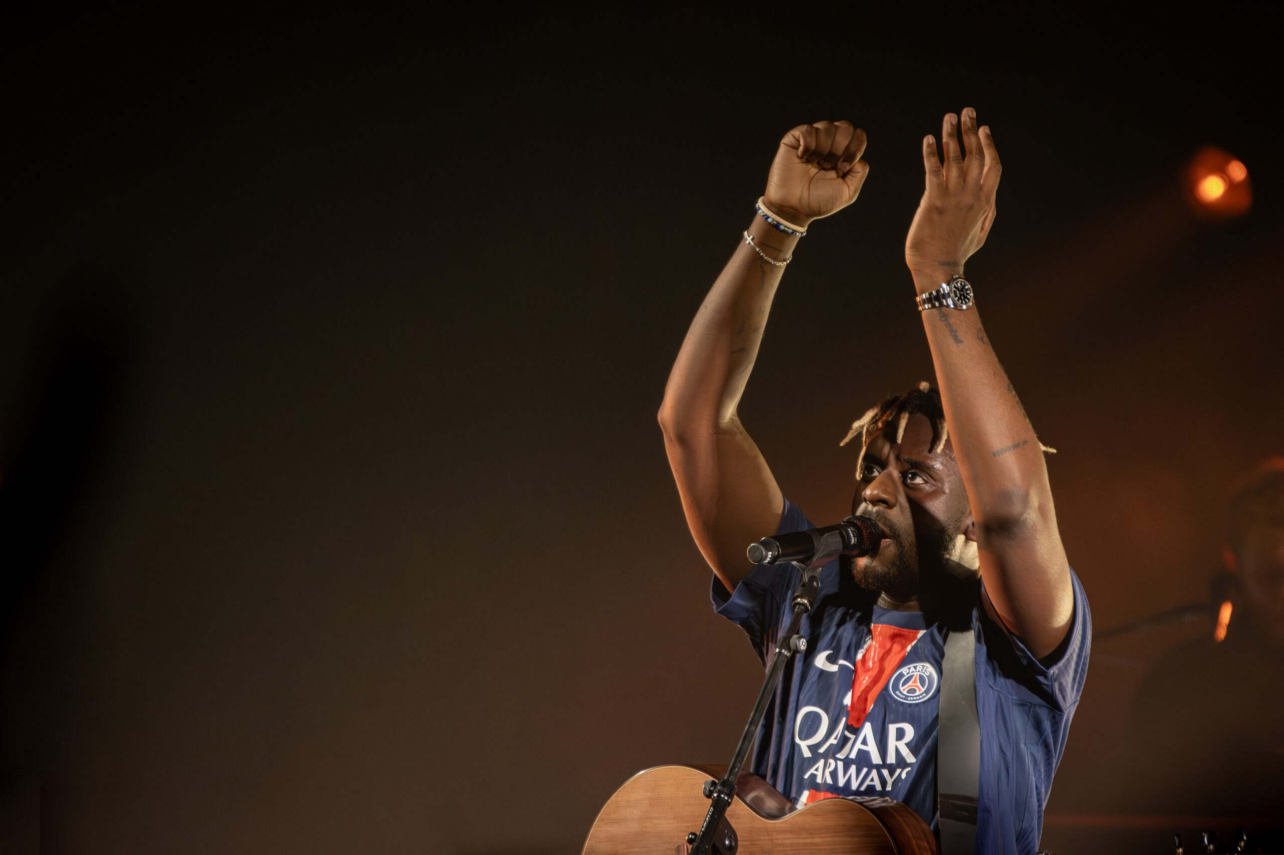 Le 5 mars dernier, Myles Smith a envoûté le Trianon. Énorme ambiance avec une pop folk endiablée, guitare sèche en avant, et batterie folle, pleine de rythme. Soir de match de foot à Paris, le chanteur débarque avec le maillot du PSG sur le dos. Pas sûr qu’il y ait eu plus de bruit au Parc des Princes ce soir là qu’au Trianon…