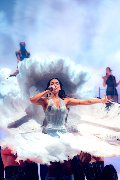 Certains titres seront joués sur un format plus acoustique (Maria, These Walls), alors que d’autres auront une touche plus émotion (Anything For Love). Bien évidemment, le premier effort sera représenté (Be The One, New Rules) tout comme le deuxième (Physical, Levitating, Don’t Start Now…) Ajouté à cela les collaborations avec les plus grands de la musique électronique (Calvin Harris, Silk City) et vous obtenez une setlist ultra cohérente. Les titres s’enchaînent bien, et que dire de ce magnifique final en apothéose !