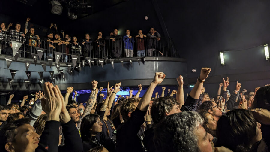 Il y avait de nombreuses attentes autour de ce concert. En effet, les places ont été mises en vente début août 2025 et se sont vendues en moins de 10 minutes. Les fans espéraient une sortie d’album entre temps, ou au moins quelques nouveaux single, mais c’est finalement un EP de 6 morceaux, King Of Terrors qui est sorti en septembre. La tournée, nommée The Campaign Trail, pouvait nous laisser penser à une campagne de ralliement des fans avec de nouvelles choses à proposer sur scène, mais malheureusement ce ne fût pas le cas. L’identité scénique du groupe colle parfaitement en revanche. Le chanteur, toujours avec ce masque énigmatique, est debout derrière un pupitre et le reste du groupe est tous de noir vêtus, avec des cagoules arborant uniquement le symbole de President.