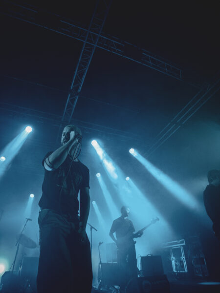 Changement radical d’atmosphère lorsque Humour prend la scène plus tard dans la soirée. Originaire de Glasgow, le groupe fait partie de cette nouvelle vague post-punk britannique qui privilégie l’urgence, la tension et une forme de théâtralité sonore.